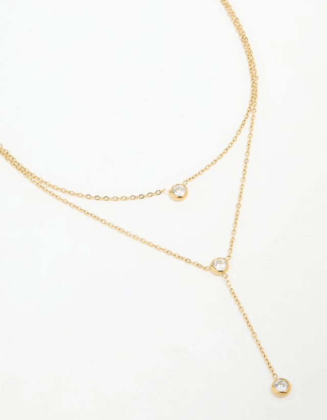 Waterproof Gold Plated Stainless Steel Cubic Zirconia Y-Necklace