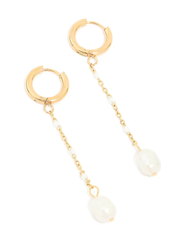 Waterproof Gold Plated Stainless Steel Pearl Diamante Cup Chain Drop Earrings