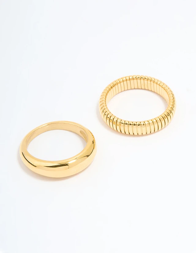 Waterproof Gold Plated Stainless Steel Ridge & Smooth Rings 2-Pack