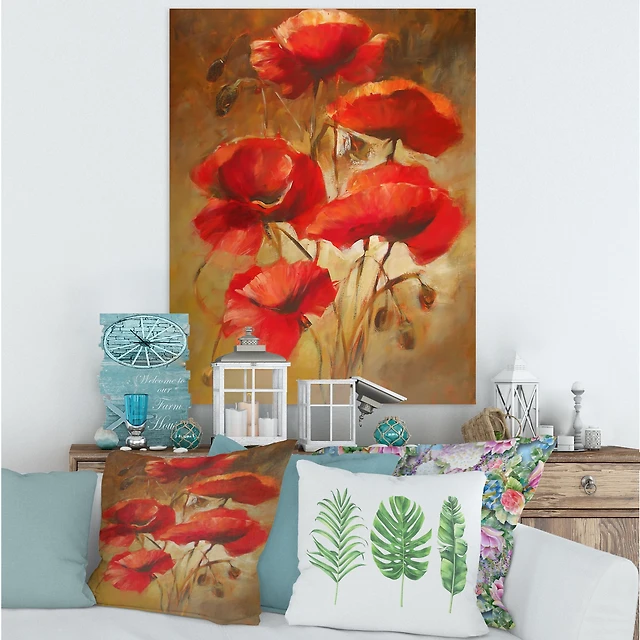 Red Blossoming Poppies IV Wall Art