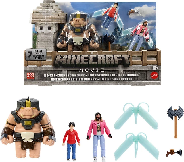 Minecraft A Well-Crafted Escape Figure Pack with 3 Action Figures & 4 Accessories Inspired by the Movie