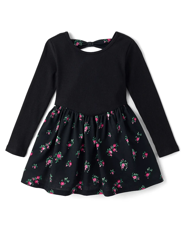 Baby And Toddler Girls Floral Ribbed Fit Flare Dress
