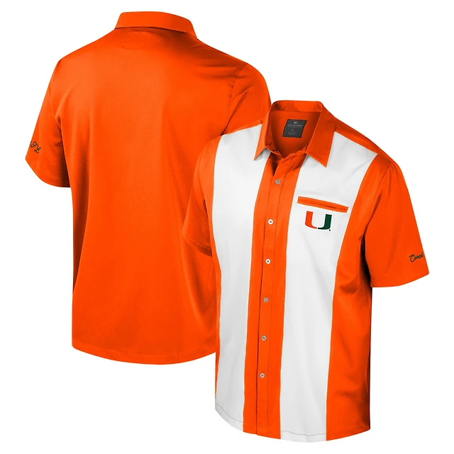 Men's Colosseum Orange Miami Hurricanes Strike Bowling Button-Up Shirt