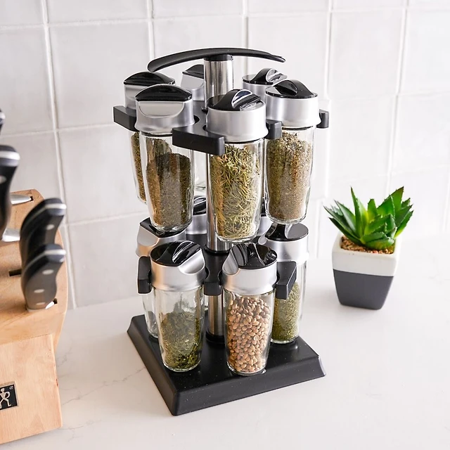 Revolving Wood Spice Rack, 16 Pieces - Acacia