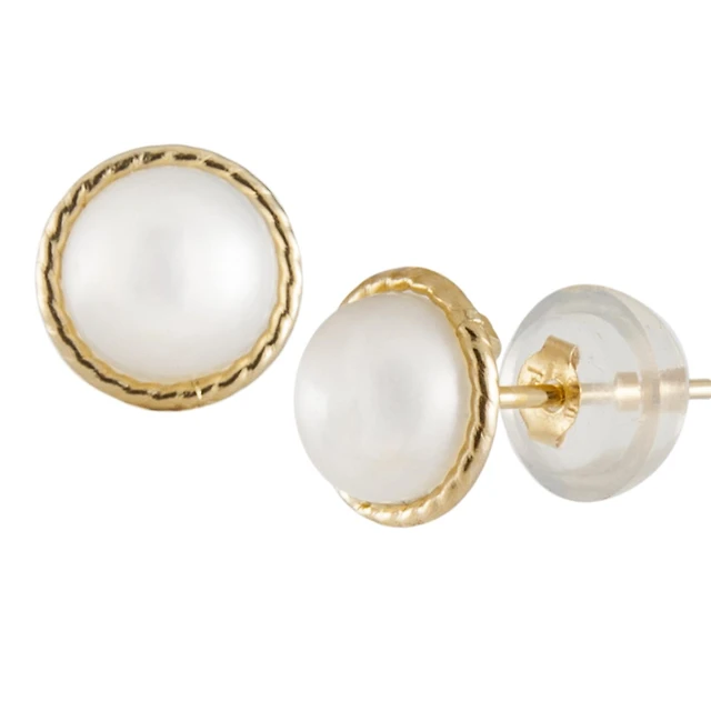 14K Yellow Gold 6-6.5mm Freshwater Pearl Stud Earrings