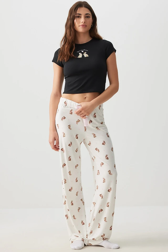 Ardene Super Soft Flare PJ Pants in White | Size Large | Polyester/Spandex | Eco-Conscious