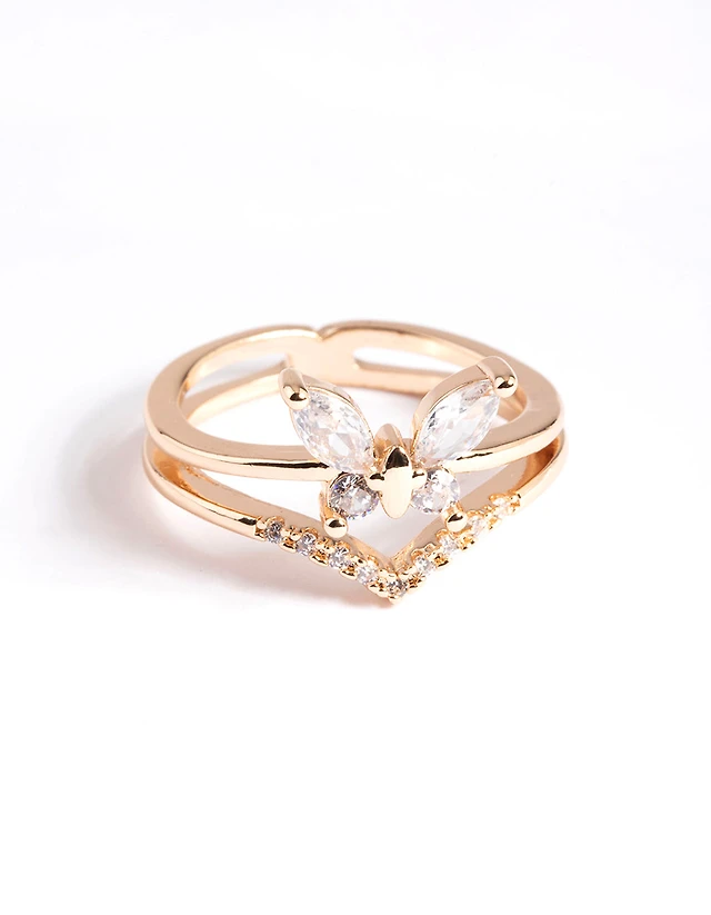Gold Cubic Zirconia Wrapped Arrow Ring