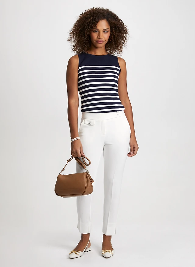Striped Crew-Neck Top & Slim-Leg Ankle Pants