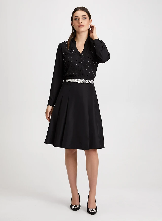 Rhinestone Detail Sweater & Straight Leg Pull-On Jeans