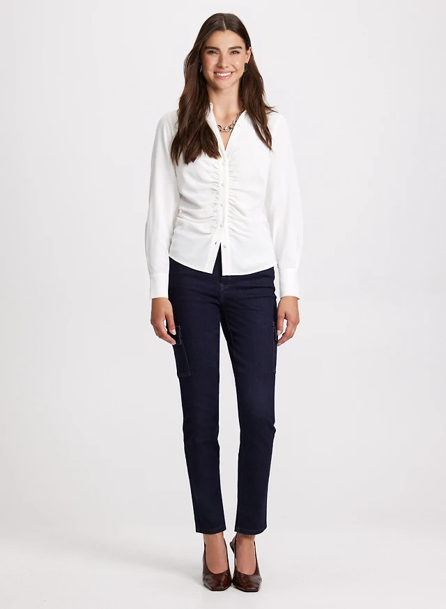 Button-Down Blouse & Slim Leg Cargo Jeans