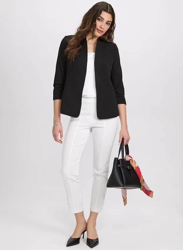 Twill 3/4 Sleeve Blazer & Slim Pull-On Ankle Pants