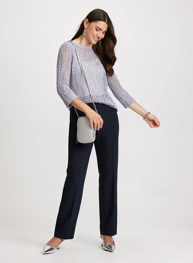 Pleated Back Cardigan & Side Slit Pull-On Pants