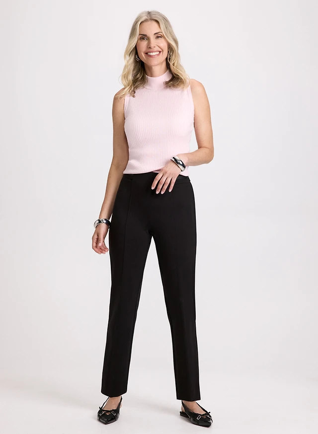 Pleated Shoulder Sleeveless Top & Pull-On Straight Leg Pants