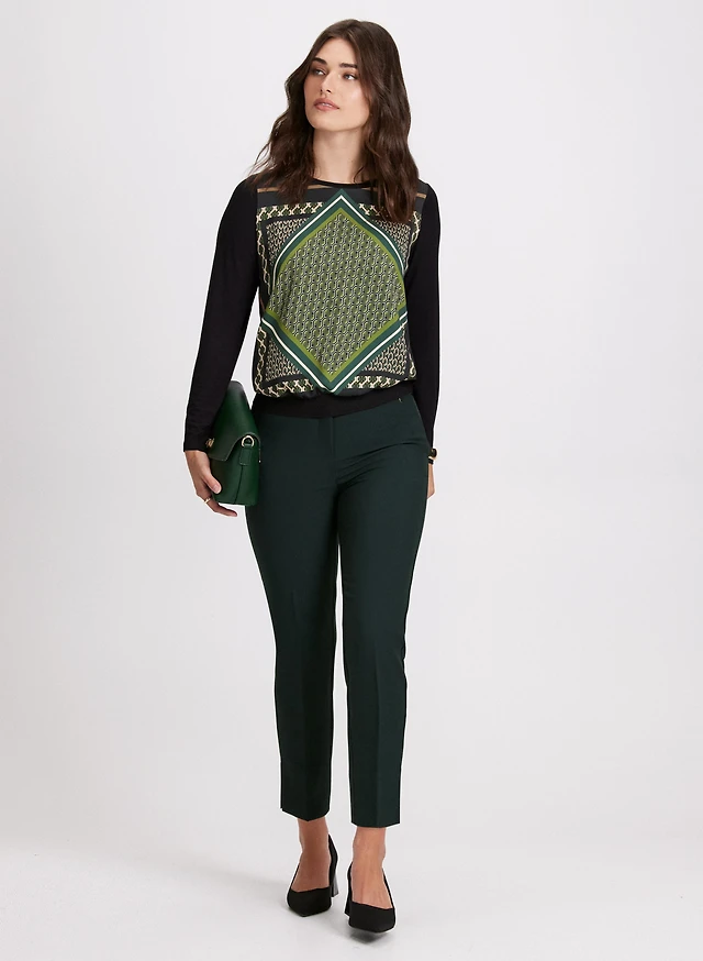 Geometric Print Long Sleeve Top & Emma Slit Hem Slim-Leg Pants