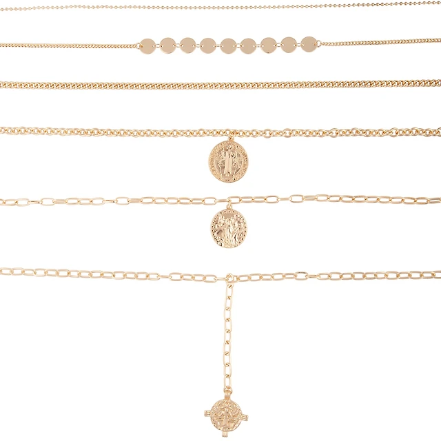 Gold Evil Eye & Coin Chain Anklets 3-Pack