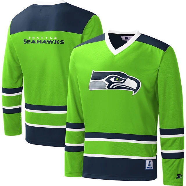 Men's Starter Neon Green Seattle Seahawks Cross-Check V-Neck Long Sleeve T-Shirt