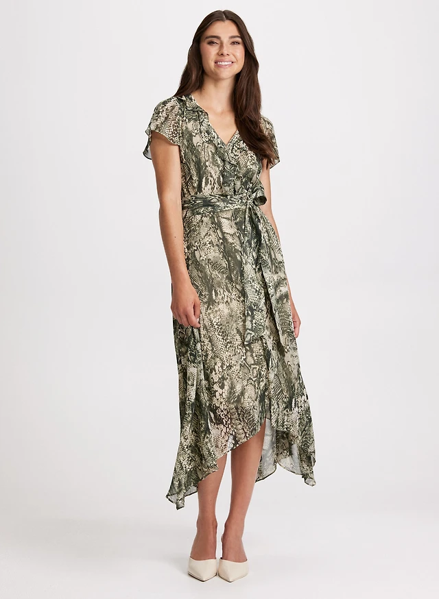 Ardene Printed Mesh Draped Dress in Grey | Size | Polyester/Elastane