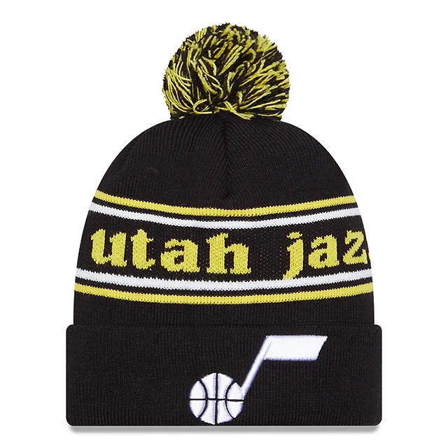 Men's New Era Black Utah Jazz Marquee Cuffed Knit Hat with Pom