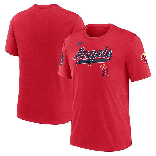 Men's Nike Heather Red California Angels Cooperstown Collection Eras Tri-Blend T-Shirt