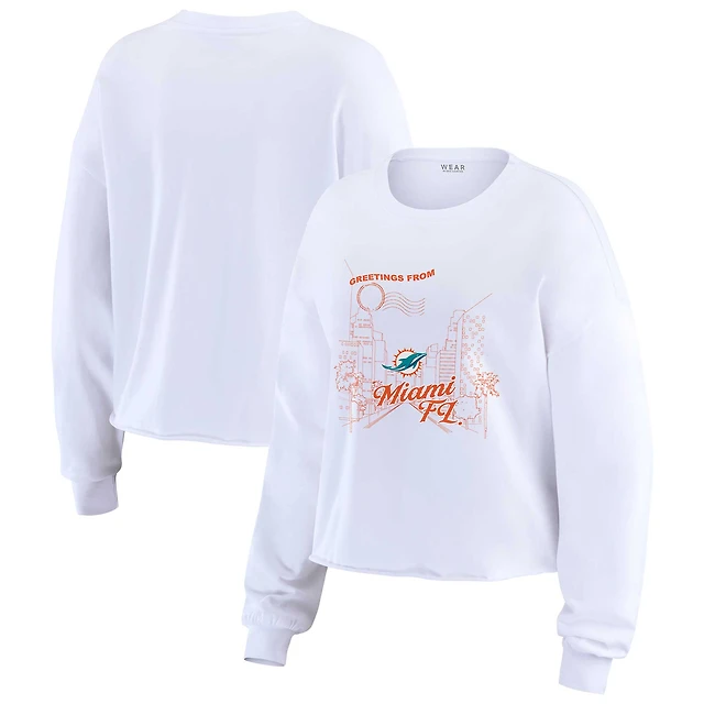 Women's WEAR by Erin Andrews White Miami Dolphins Postcard Cropped Long Sleeve Top