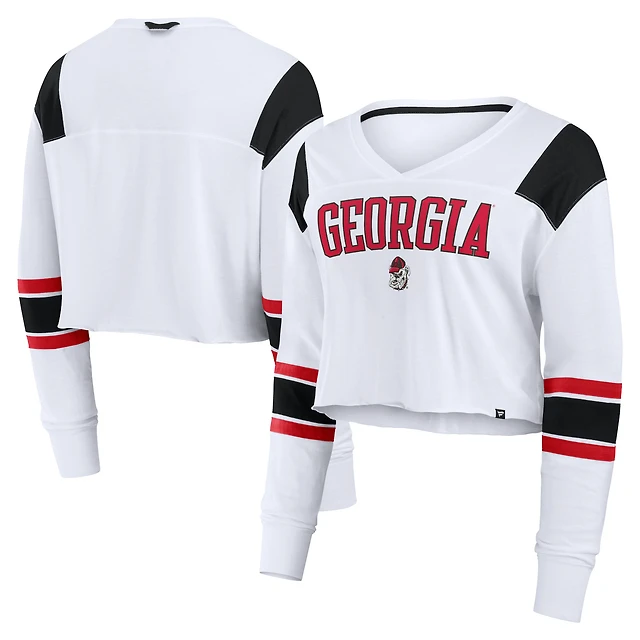 Women's WEAR by Erin Andrews White Atlanta Falcons Domestic Cropped Long Sleeve T-Shirt