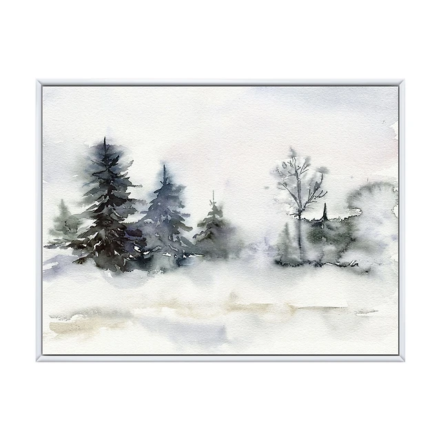 Christmas Minimalistic Forest Landscape and Snow Canvas Wall Art