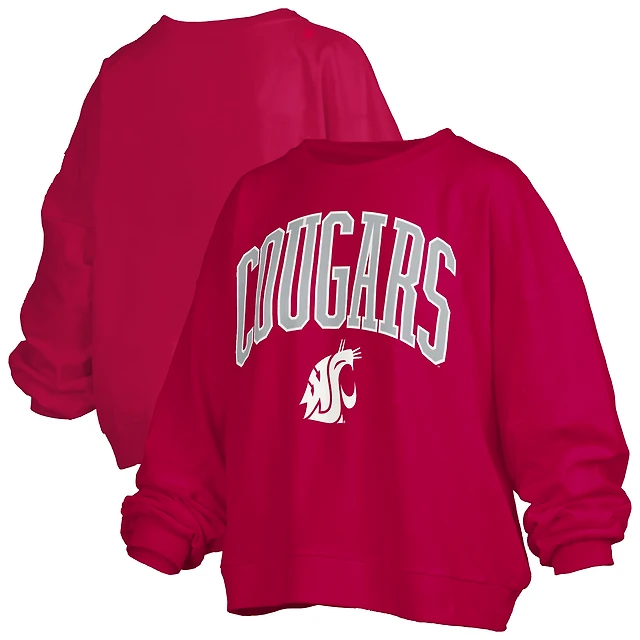 Women's Pressbox Crimson Washington State Cougars Vintage Wash Pullover Sweatshirt