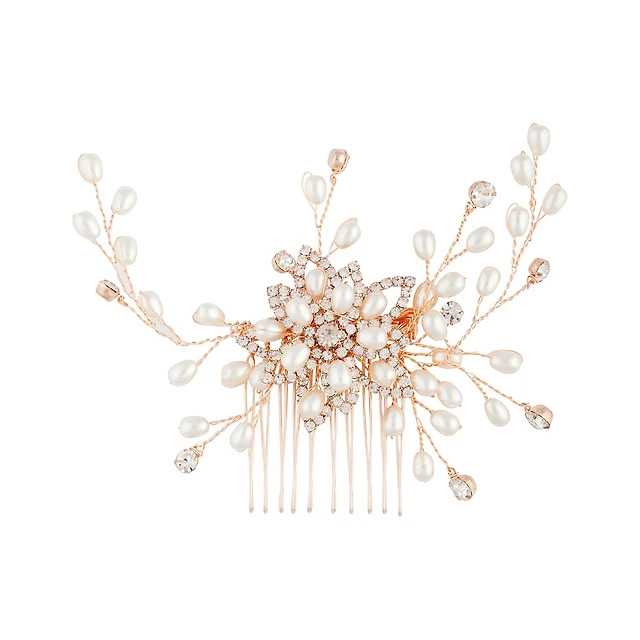 Rose Gold Flower Diamante & Bead Headpiece