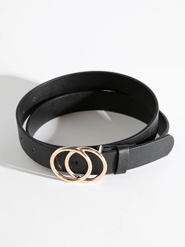 Ardene Circle Buckle Stretch Belt in Black | Size Small | Polyester