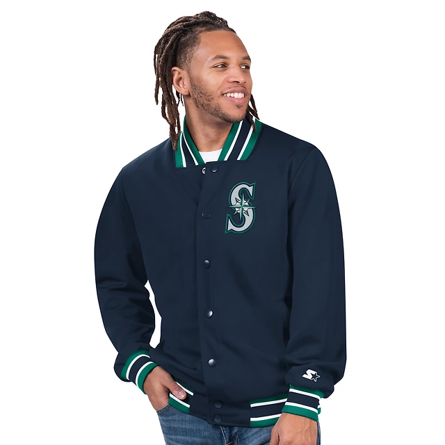Men's Starter Navy Atlanta Braves Lead Runner Full-Zip Jacket
