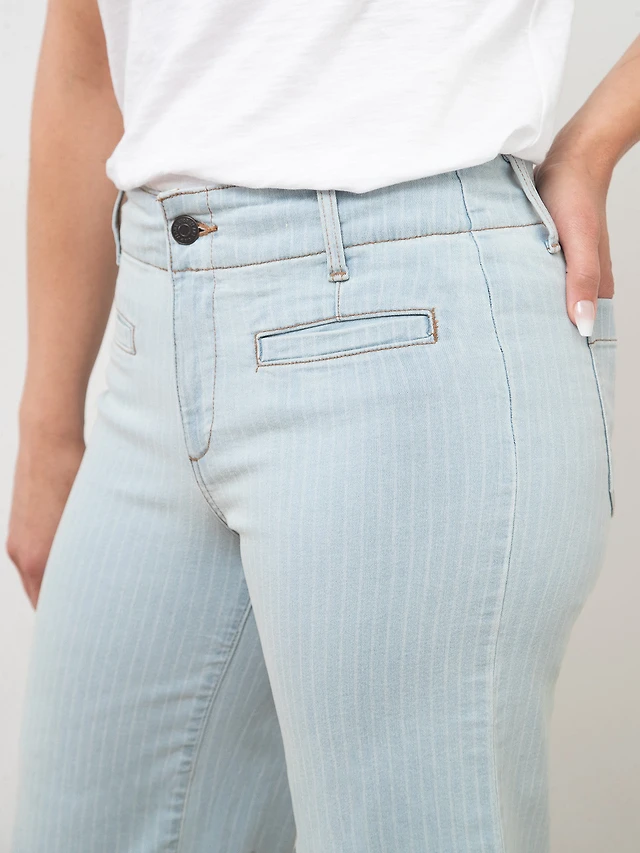 Petite Haylie Wide Crop Jeans in Light White Stripe
