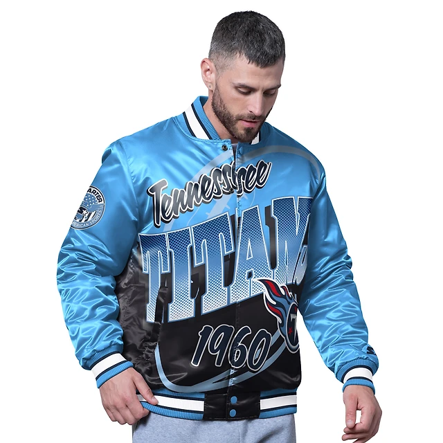 Men's Starter Blue/Silver Dallas Mavericks Renegade Satin Full-Snap Varsity Jacket