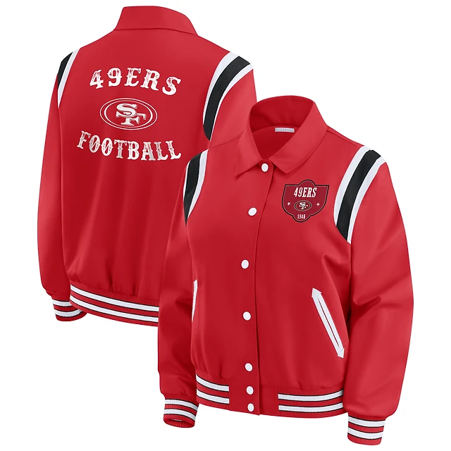 Women's WEAR by Erin Andrews Scarlet/White San Francisco 49ers Reversible Cropped Full-Zip Puffer Jacket