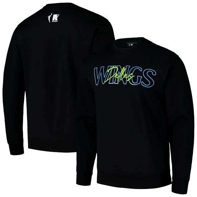 Unisex round21 Black Dallas Wings Throwback Pullover Crew Sweatshirt