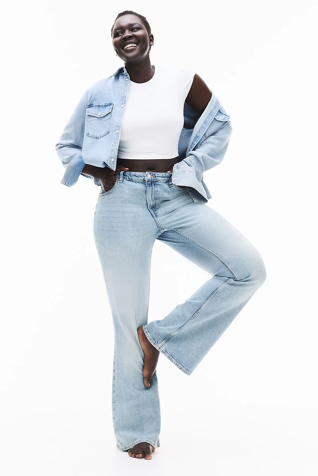 Geometric Twist-Neck Top & High Rise Flared-Leg Jeans