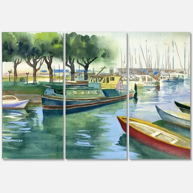 peacocks Watercolor II Canvas Wall Art - 3 Panels