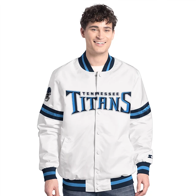 Men's Starter Navy Tennessee Titans Scout I Full-Snap Varsity Jacket