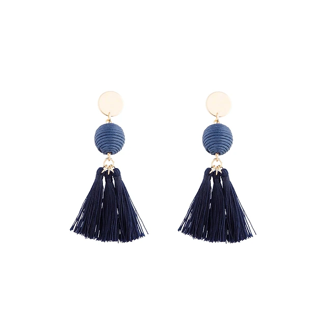 Gold Navy Blue Wrap Ball Earrings