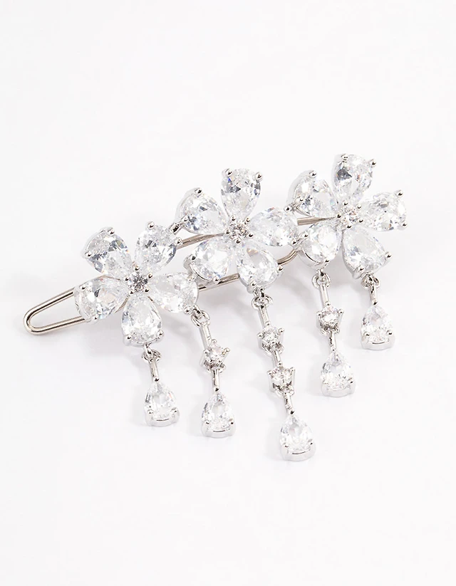 Silver Cubic Zirconia Triple Flower Droplet Hair Clips Pack