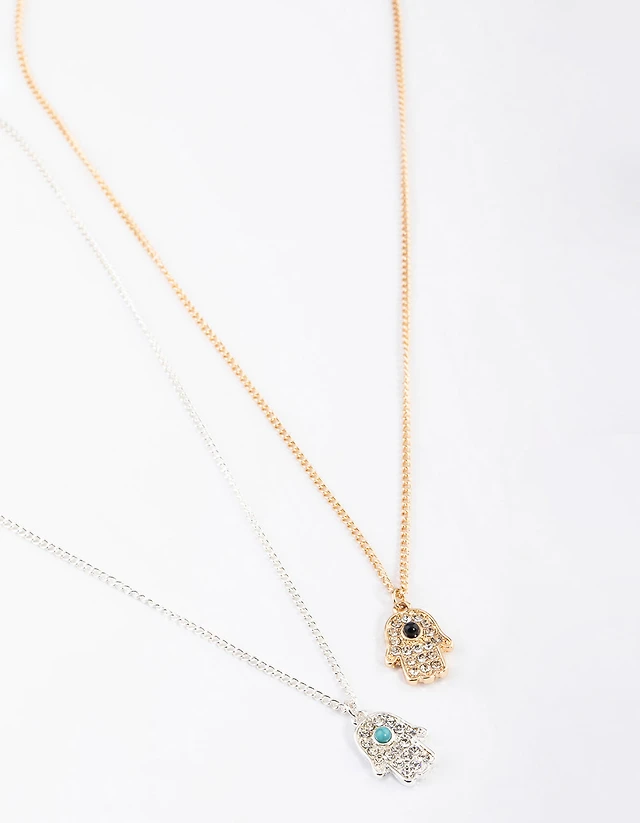Diamond Accent Tilted Double Heart Pendant in 10K White Gold