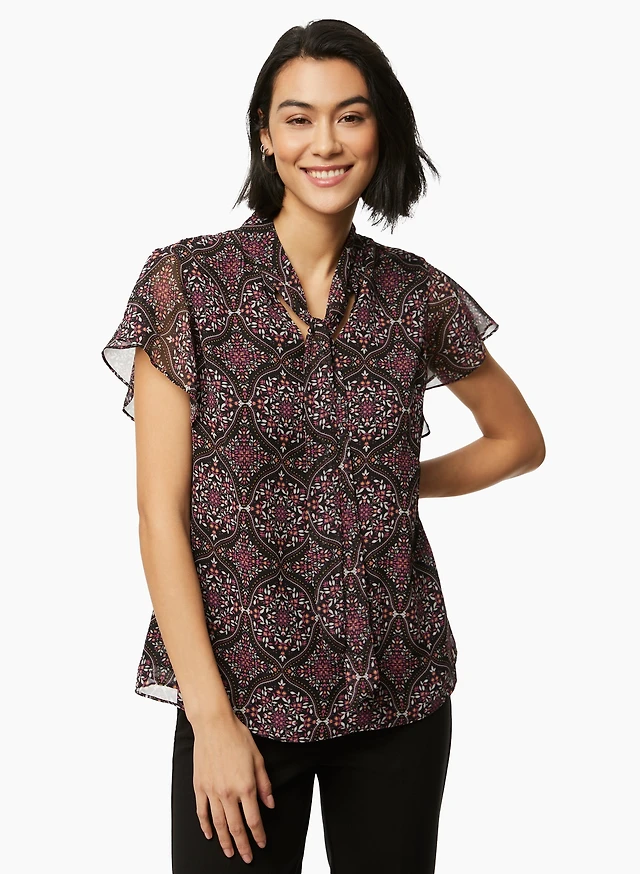 Leaf Print Cap-Sleeve Top