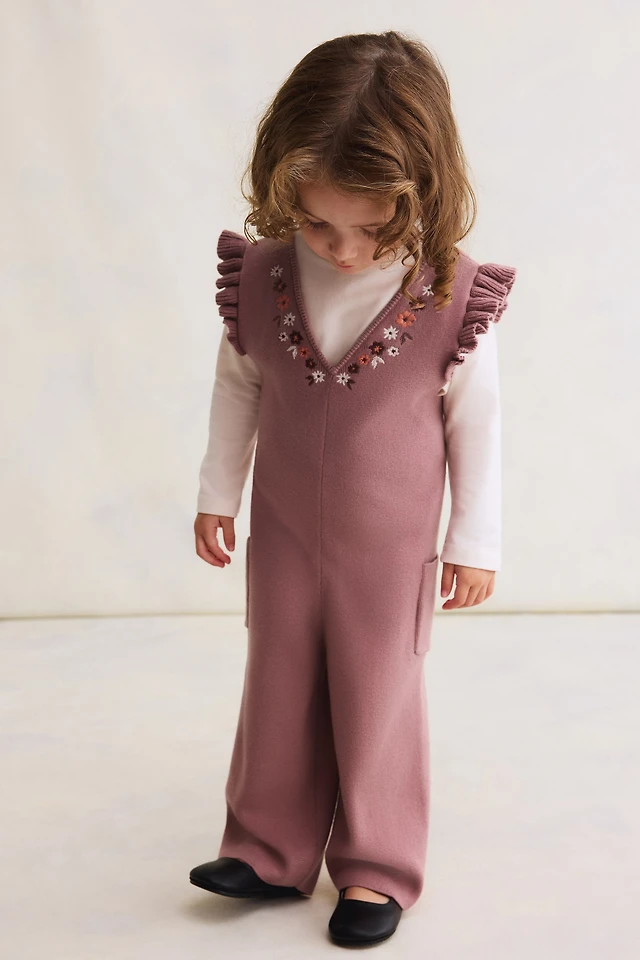 Ruffled Sleeveless Top & Embroidered Pull-On Jeans