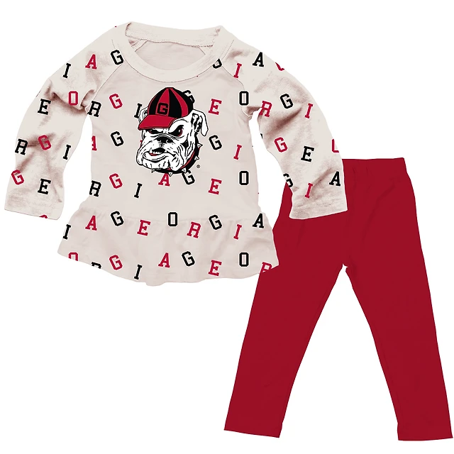 Girls Infant Wes & Willy Oatmeal Georgia Bulldogs Ruffle Raglan Long Sleeve T-Shirt Leggings Set