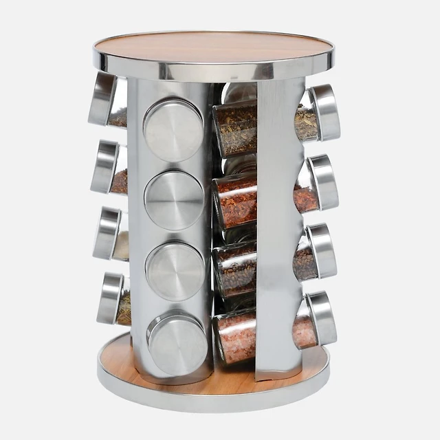 JS GOURMET Ensemble de 16 pots en verres avec support tournant en acier inoxydable & bambou