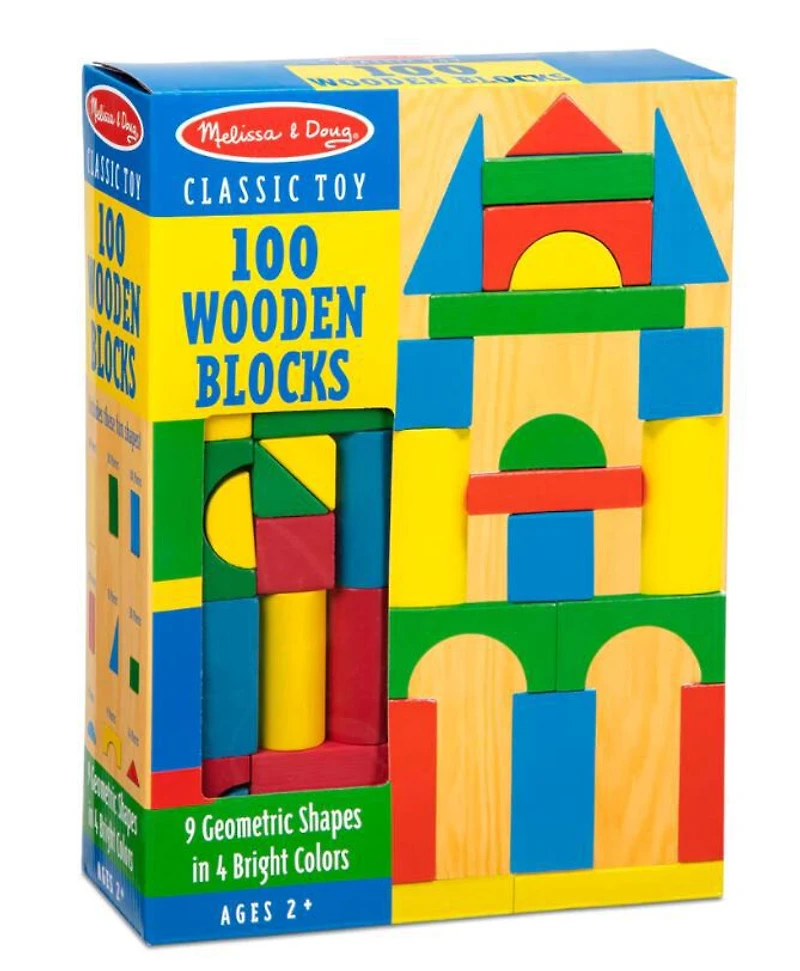 This favorite collection of 100 wooden blocks comes in four colors and nine shapes. Little builders three and older will find it easy to grasp the approximately 1-inch to 2.25-inch smooth blocks. Kids delight in stacking, building, and knocking them down in countless colorful combinations, while gaining invaluable practice with fine motor skills and dexterity, color, shape recognition, and pre-math skills.