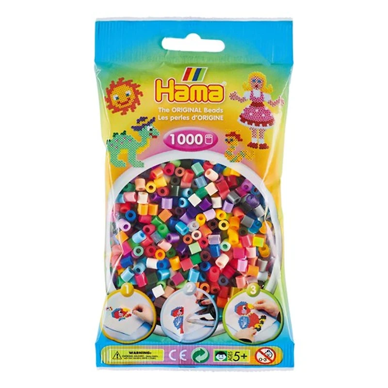 Kids and adults alike will have a lot of fun with these tiny plastic beads! Create your own designs and make them permanent by ironing them. Hama Beads create a beautiful effect when fused together with an iron. The beads are placed one by one on a pegboard, and then ironed (ask an adult!) until the beads fuse together. Once cooled, they can be removed from the reusable pegboard and placed on a wall, bookshelf, or anywhere else you want your design to be seen.With Hama beads, children ages 5 and up learn to recognise colours, handle small objects, distinguish shapes and get a sense of quantities. Hours of creative fun!Contains 1,000 Hama Beads (0.5 mm) in translucent colours.