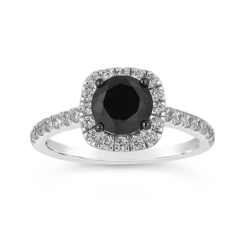 Stop her in her tracks with this gorgeous black and white 1.45CTW diamond ring. For the trendy bride or someone with untraditional tastes, this ring is as unique as she is. Proudly displaying a black-treated round-cut diamond, this extraordinary bridal ring is set in timeless 10K white gold and polished to a dazzling shine.
