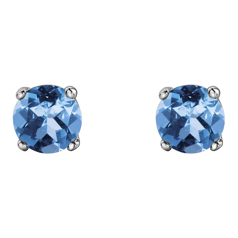 These classic stud earrings are set in 10-karat  gold  and feature  4mm blue topaz gemstones. Blue Topaz is the birthstone for December. These earrings are a lovely versatile addition to any ensemble.
