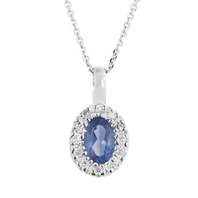 10K White Gold Sapphire & Diamond Halo 18" Pendant
