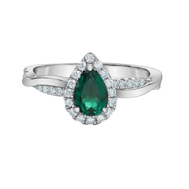 14K Gold Created Emerald & Lab Grown 0.33CTW Diamond Ring
